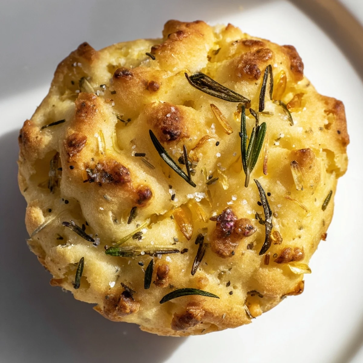 These savory handheld breads combine the pillowy texture of traditional focaccia with the convenience of muffin form. Each golden-brown crown gets dimpled with olive oil and topped with fragrant rosemary sprigs and flaky salt, creating irresistible crispy edges while staying tender inside.