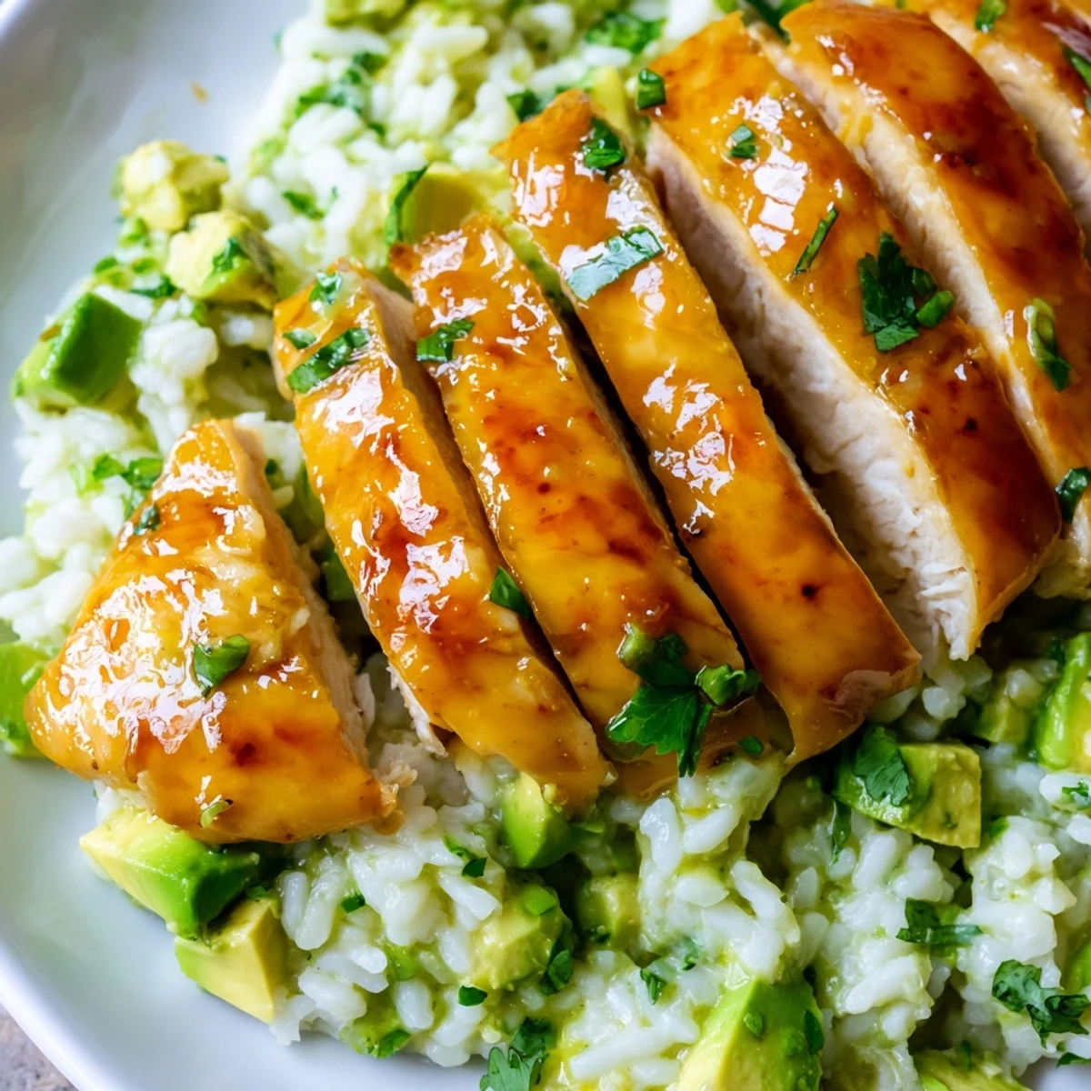 This vibrant dish combines juicy chicken breasts marinated in a sweet and tangy honey lime sauce with creamy avocado rice. The chicken develops beautiful caramelization as it cooks, while the rice stays fluffy and rich thanks to mashed avocado blended with fresh cilantro and lime.