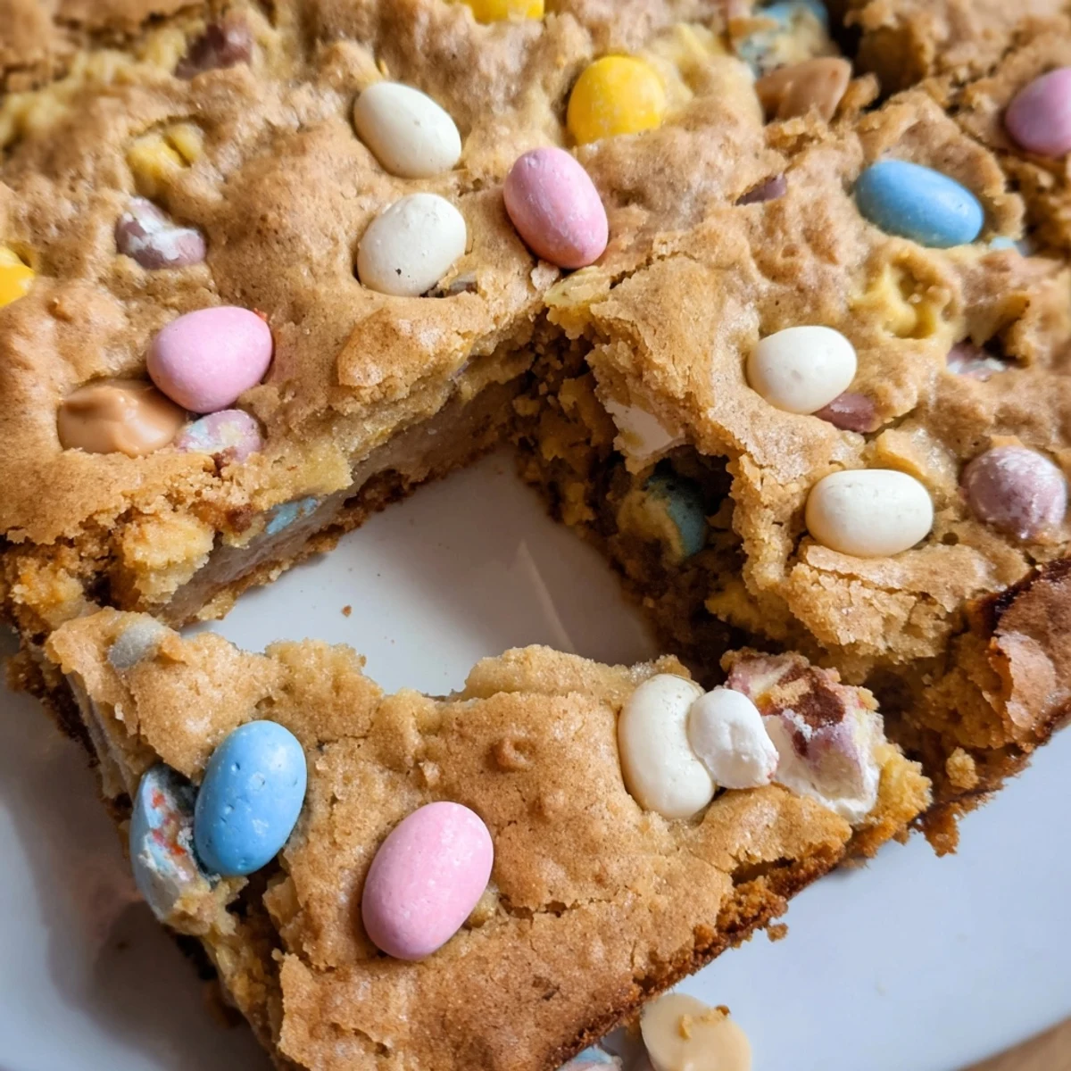 These rich, buttery blondies combine a soft vanilla base with white and milk chocolate chips throughout, then get crowned with crunchy, pastel-colored Cadbury Mini Eggs for the ultimate spring dessert. The blondies bake up golden with slightly crisp edges and a decadently fudgy center. Best enjoyed slightly warm when the chocolate is still melty, they're perfect for Easter brunch, spring potlucks, or whenever that chocolate craving hits.