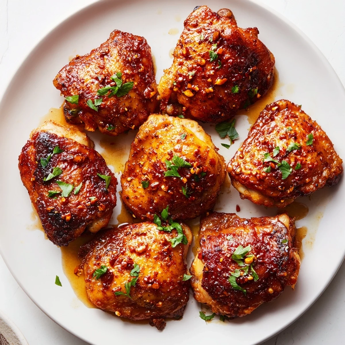 Bone-in, skin-on chicken thighs are the real star here because they forgive the home cook in ways boneless breasts never will. The skin renders into something crispy and satisfying while the bone keeps the meat from drying out even if your oven runs hot or you're distracted during cooking. The first time I tried this with skinless chicken, the result was sad and pale by comparison; now I plan my shopping around finding good thighs.